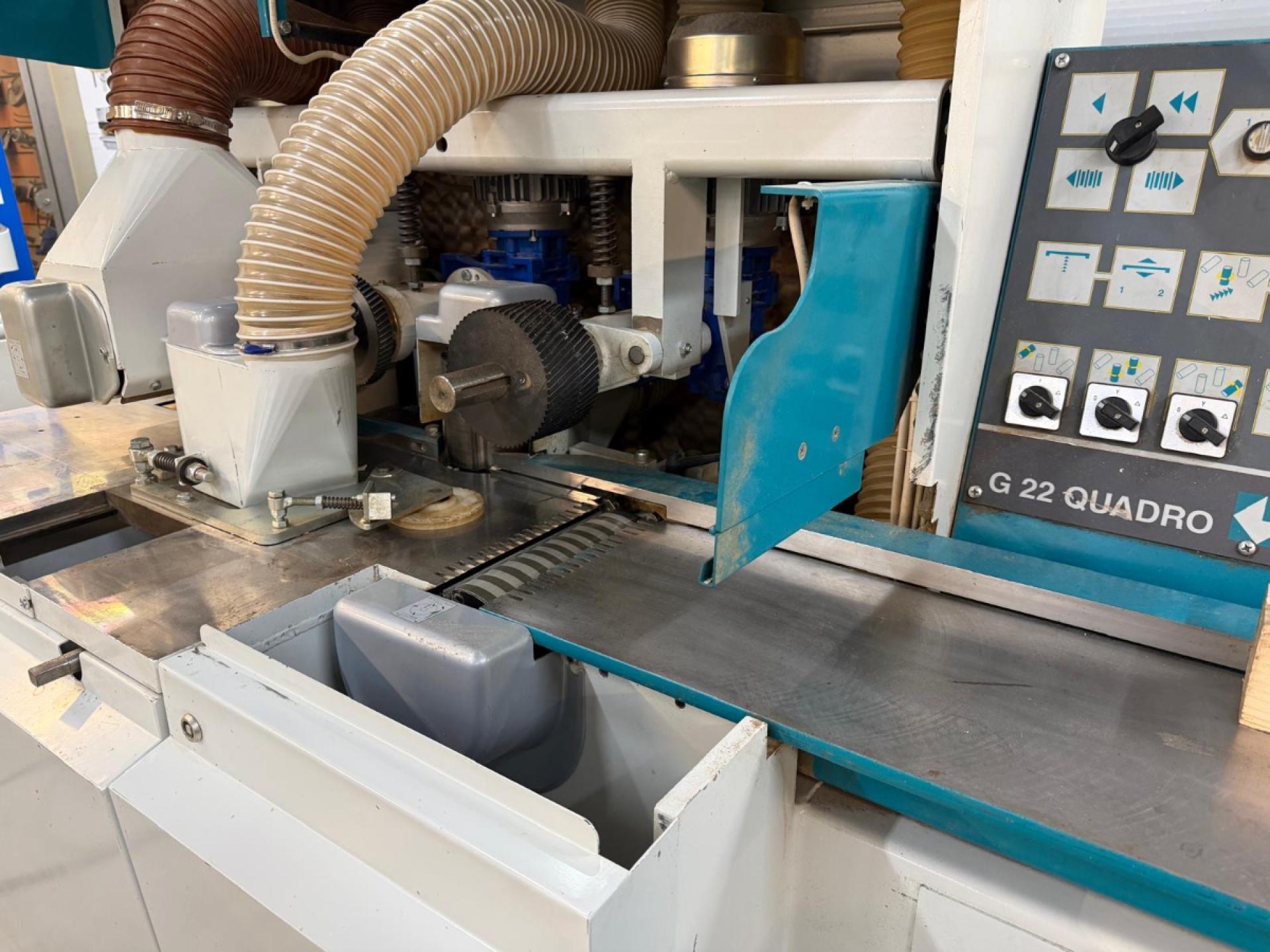 A robust yet compact machine with simplicity as its main characteristic. The 4 heads are driven by 3 motors. The first head is 5.5 hp, the side heads share a 10 hp motor and the top head is 5.5 hp.